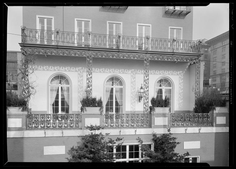 Cosmopolitan Club. Detail of rear balconies from causeway.