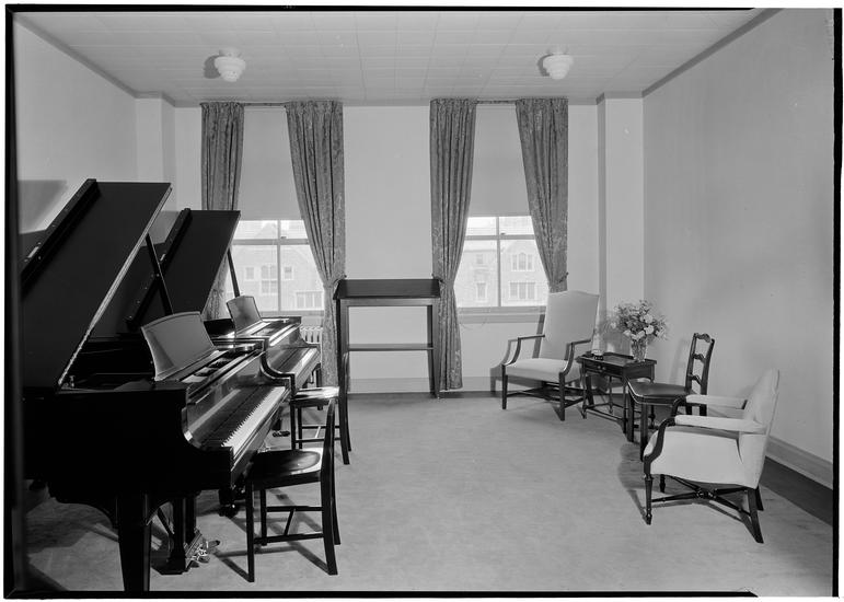 Juilliard Musical Foundation. Students reception room toward piano.
