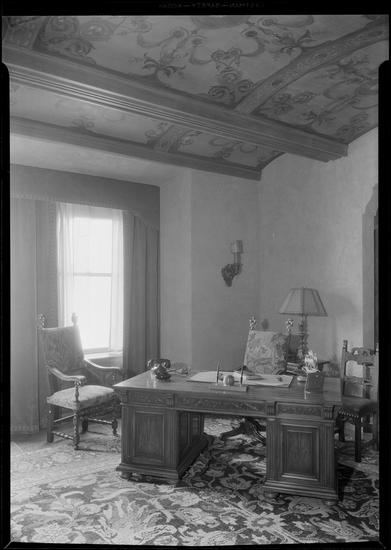 Michael E. Paterno [residence]. Mr. Paterno's office, general view to desk and fireplace.