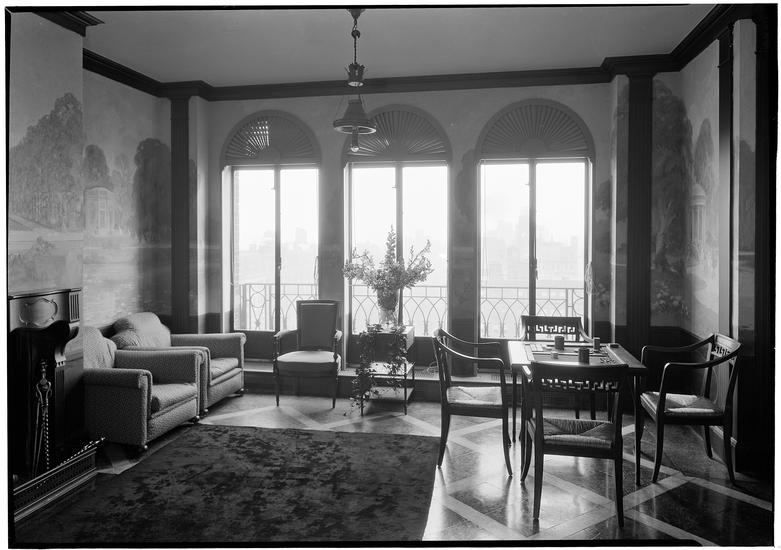 Faris R. Russell [residence]. Living room to side windows.