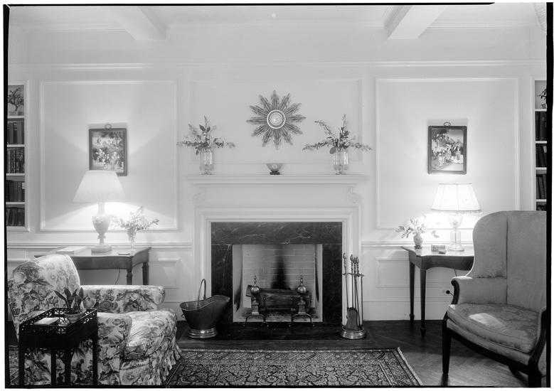 Maurice S. Benjamin [residence]. Living room sharp view to fireplace.