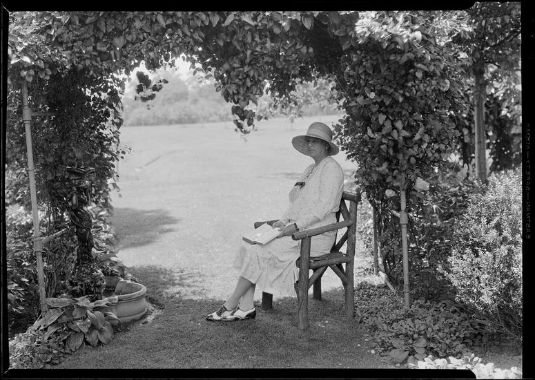 Charles G. Meyer [residence]. Mrs. Meyer under arbor in sunshine, A.