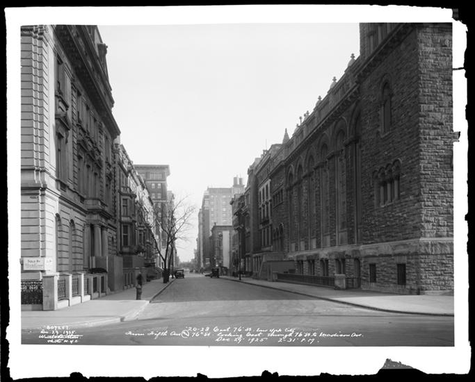 20-28 East 76th Street. From N.E. corner of 76th Street and Madison Avenue. Looking S.W. down Madison Avenue to 75th Street.