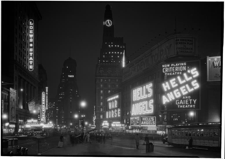 New York City views. Times Square at dusk, looking south from 46th Street.
