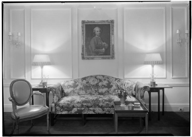 Herbert Sondheim [residence]. Living room sofa and lamps sharp.