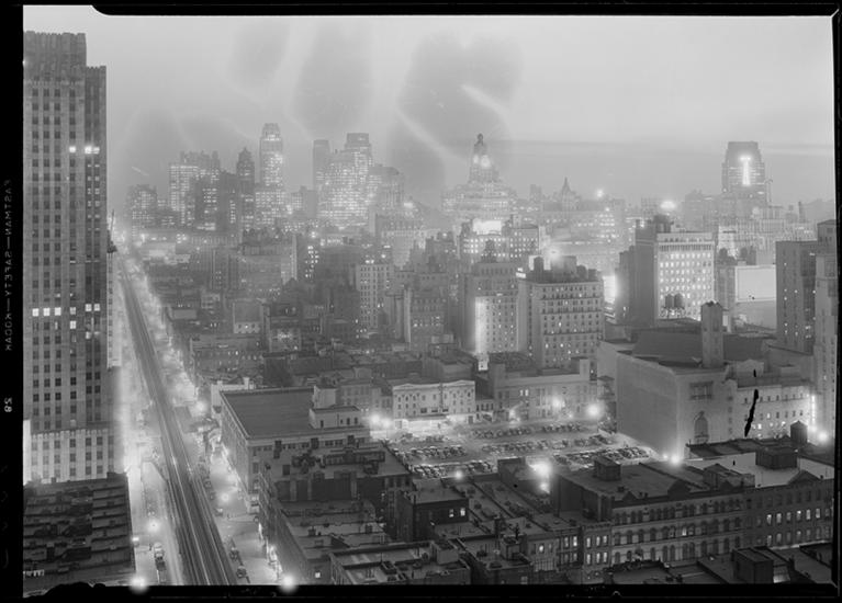 [Times Square and Sixth Avenue from Warwick Hotel, night]
