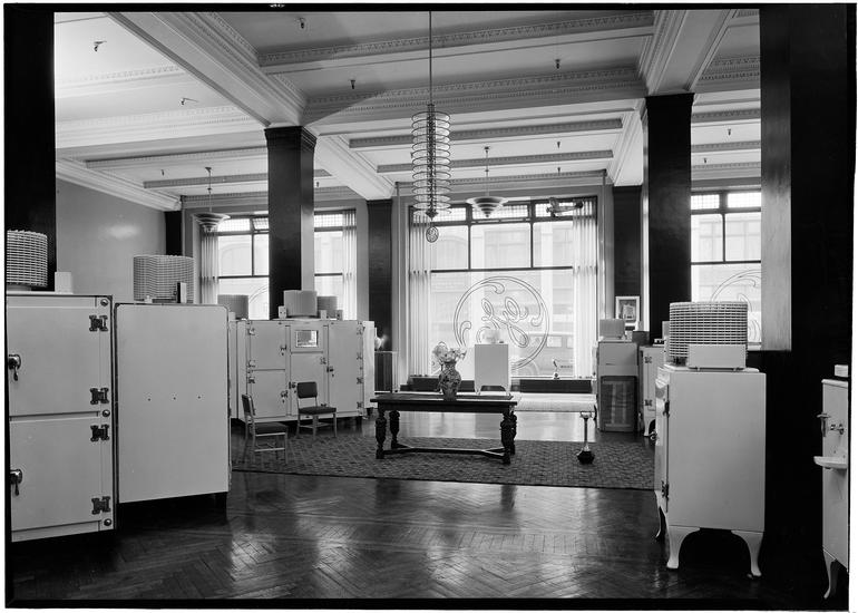 Rex Cole [Building]. Salesroom down entrance aisle.