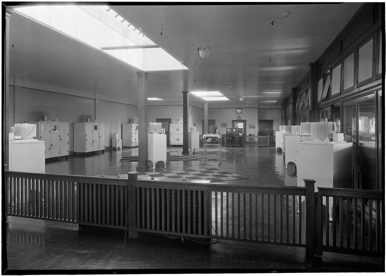 Rex Cole [Building]. Salesroom down entrance aisle.