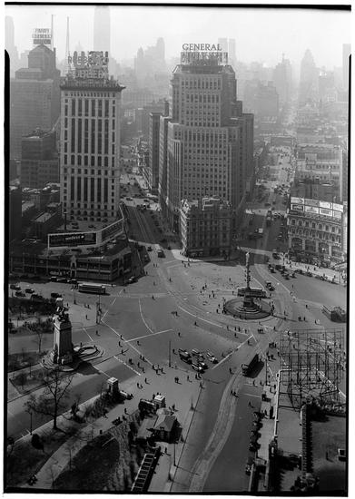 New York City views. General view - Columbus Circle from [Central] Park entrance.