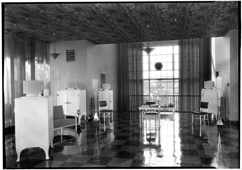 Rex Cole [Building]. Salesroom down entrance aisle.