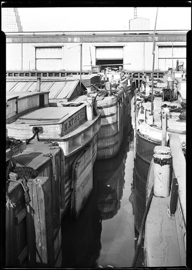 Barges at Pier 6 - East River.