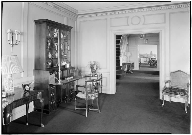 Samuel L. M. Barlow [residence]. Living room door and vista to dining room.