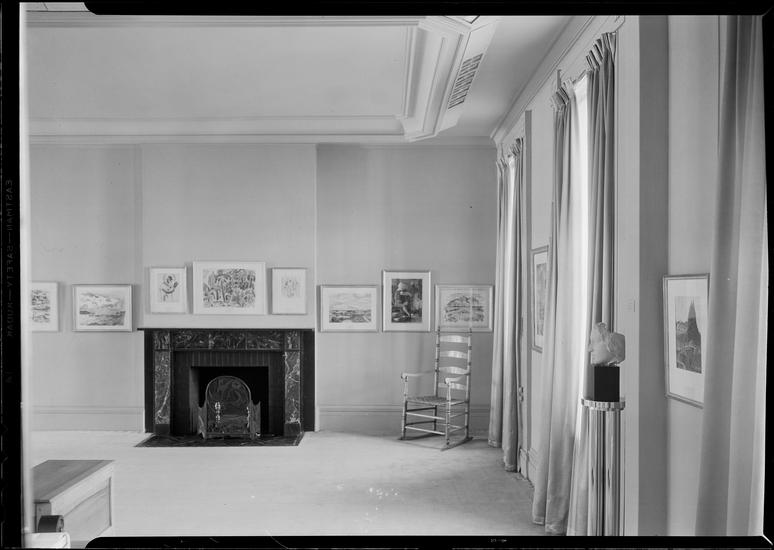 Whitney Museum of Modern Art. Grey gallery window & south fireplace.