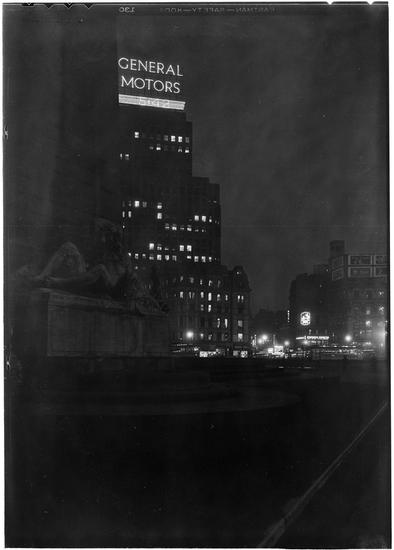 [Columbus Circle at night.]