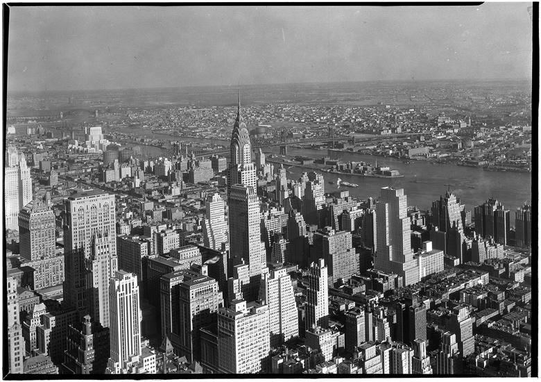 New York City views. From Chrysler Building, Daily News Building, East River.