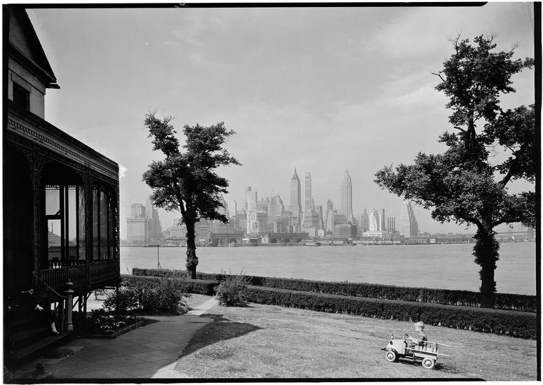 [View of Lower Manhattan and Governors Island from New York Harbor.]