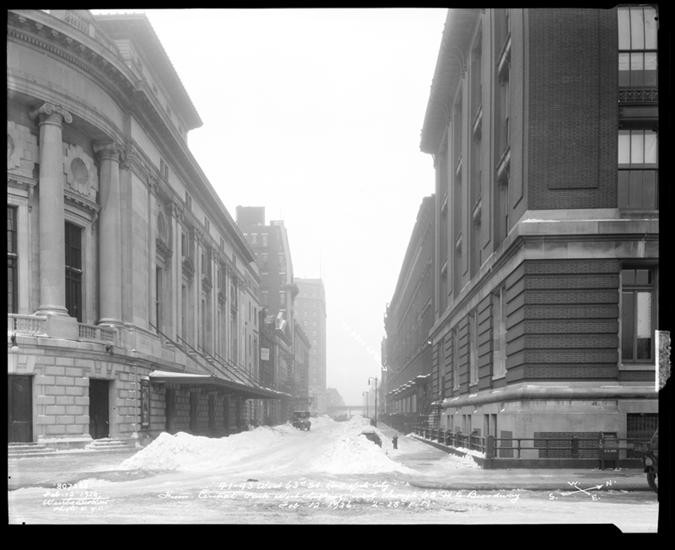 41-42 West 63rd Street. From Center of Broadway looking east through 63rd Street to Central Park West.