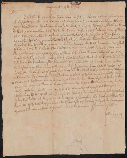 Letter from William Jones to Samuel Jones, August 17, 1774