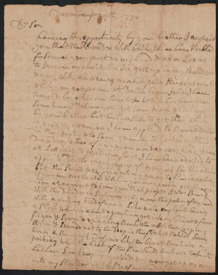 Letter from William Jones to Samuel Jones, August 26, 1770
