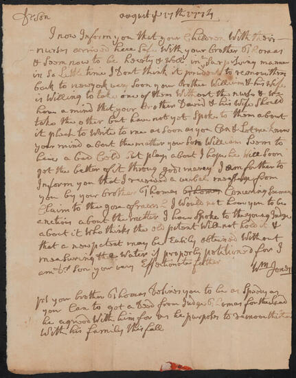 Letter from William Jones to Samuel Jones, August 28, 1774