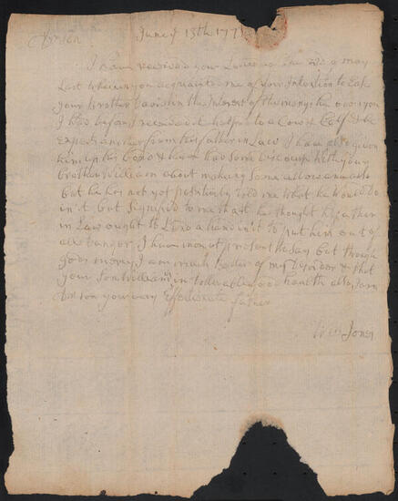 Letter from William Jones to Samuel Jones, June 13, 1767