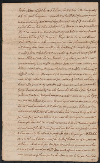 Portion of codicil of Samuel Palmer, March 24, 1716
