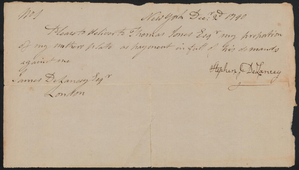 Letter from John De Lancey to James De Lancey, April 24, 1790