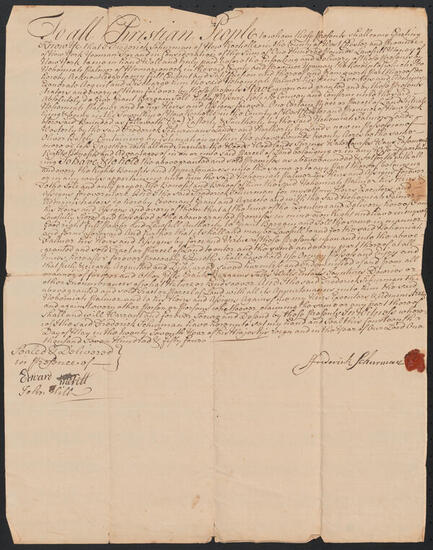 Deed issued by Johannis Hardenbergh to unknown recipient, August 14, 1734