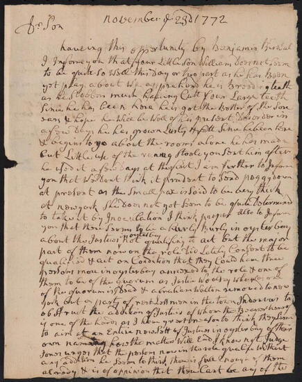 Letter from William Jones to Samuel Jones, November 29, 1772