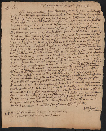 Letter from William Jones to Samuel Jones, January 10, 1760