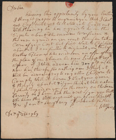 Letter from William Jones to Samuel Jones, January 7, 1767