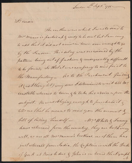Letter from Peter Augustus Jay to Peter Jay Munro, September 15, 1794