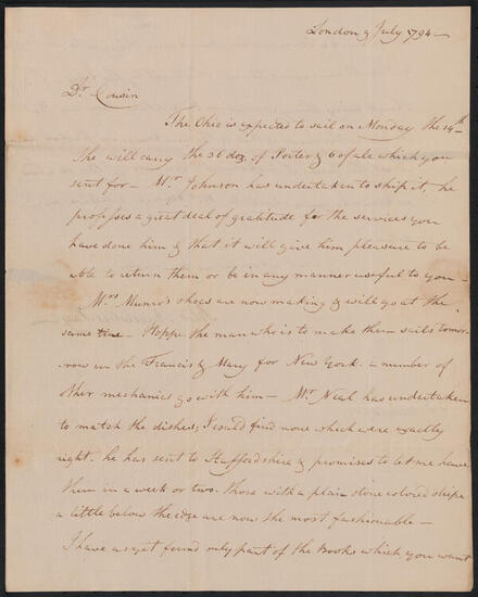Letter from Peter Augustus Jay to Peter Jay Munro, July 14, 1794