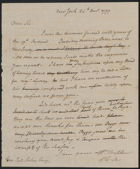 Letter from Peter Jay Munro to John Jay, December 29, 1799