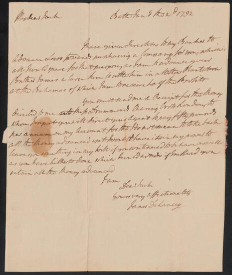 Letter from James De Lancey to John De Lancey, January 30, 1792