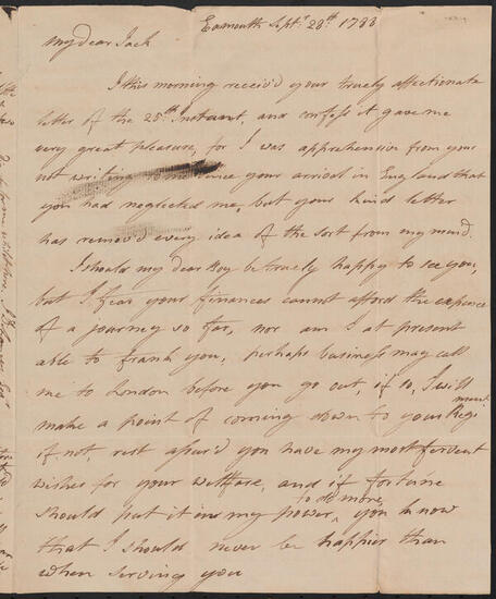 Letter from John De Lancey to his brother, James De Lancey, October 1, 1789