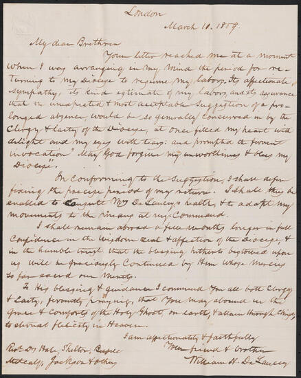 Letter from Elizabeth Herbert to William Heathcote De Lancey, March 9, 1859