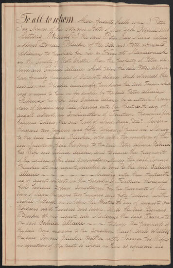 Bargain and sale for a farm at Mamaroneck. Peter Allaire and Calicia Allaire to Leonard Bleecker, August 13, 1804