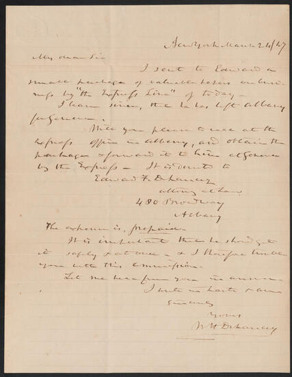 Letter from William Heathcote De Lancey to Thomas J. De Lancey, January 5, 1848