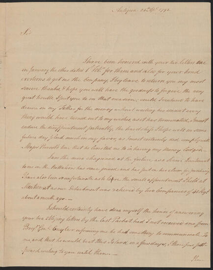 Letter from Oliver De Lancey to John De Lancey, February 1, 1792