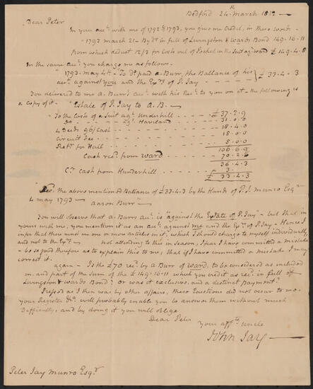 Letter from John Jay to Peter Jay Munro, March 30, 1803