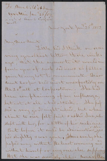 Letter from Anne Charlotte McAdam to Edward Floyd De Lancey, February 6, 1852