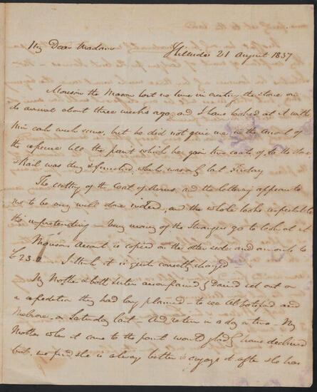 Letter from William Heathcote De Lancey to Anne Charlotte McAdam, November 19, 1836