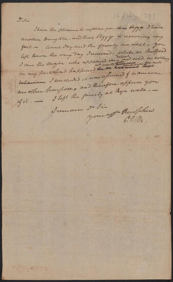Letter from Peter Jay Munro to John Jay, January 18, 1784