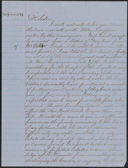 Letter from Thomas Jones to Arabella Jones Floyd, September 30, 1783
