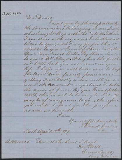 Letter from Thomas Jones to David Richard Floyd, April 20, 1786