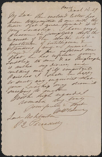 Letter from William Heathcote De Lancey to Lord Ashburton, May 16, 1859