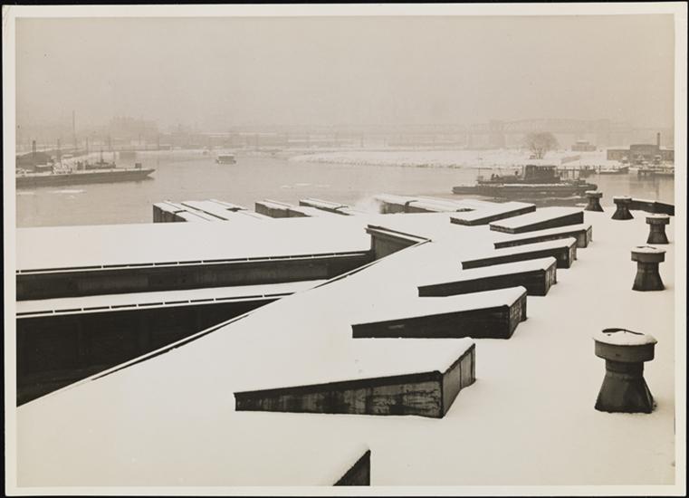 Interior of restaurant, 11:35 a.m. on clock, Christmas decorations