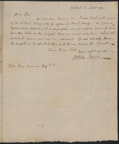 Letter from John Jay to Peter Jay Munro, September 8, 1801