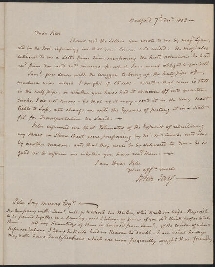 Letter from John Jay to Peter Jay Munro, October 19, 1805